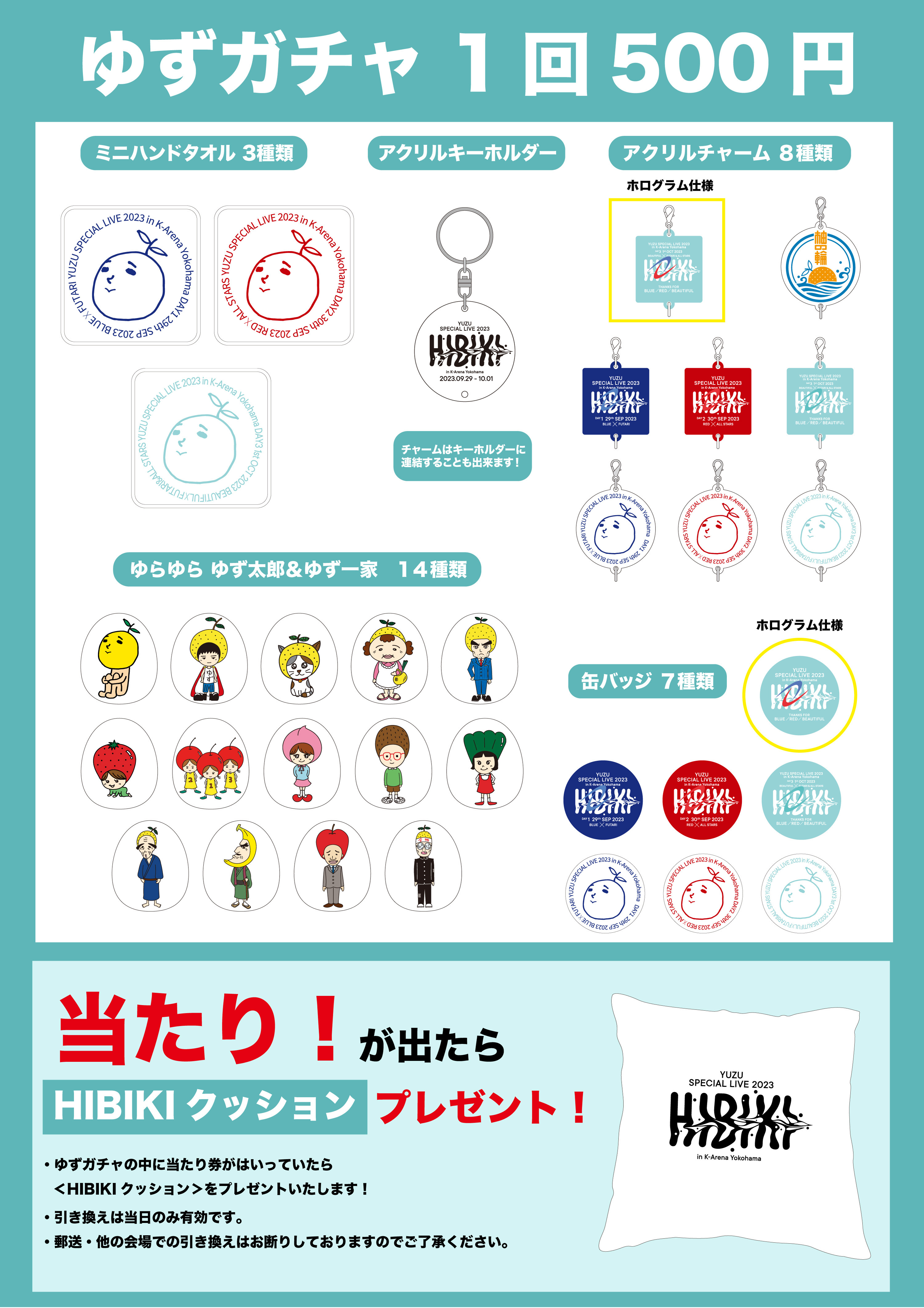 そして、「ゆずガチャ」と会場販売グッズのラインナップも公開!