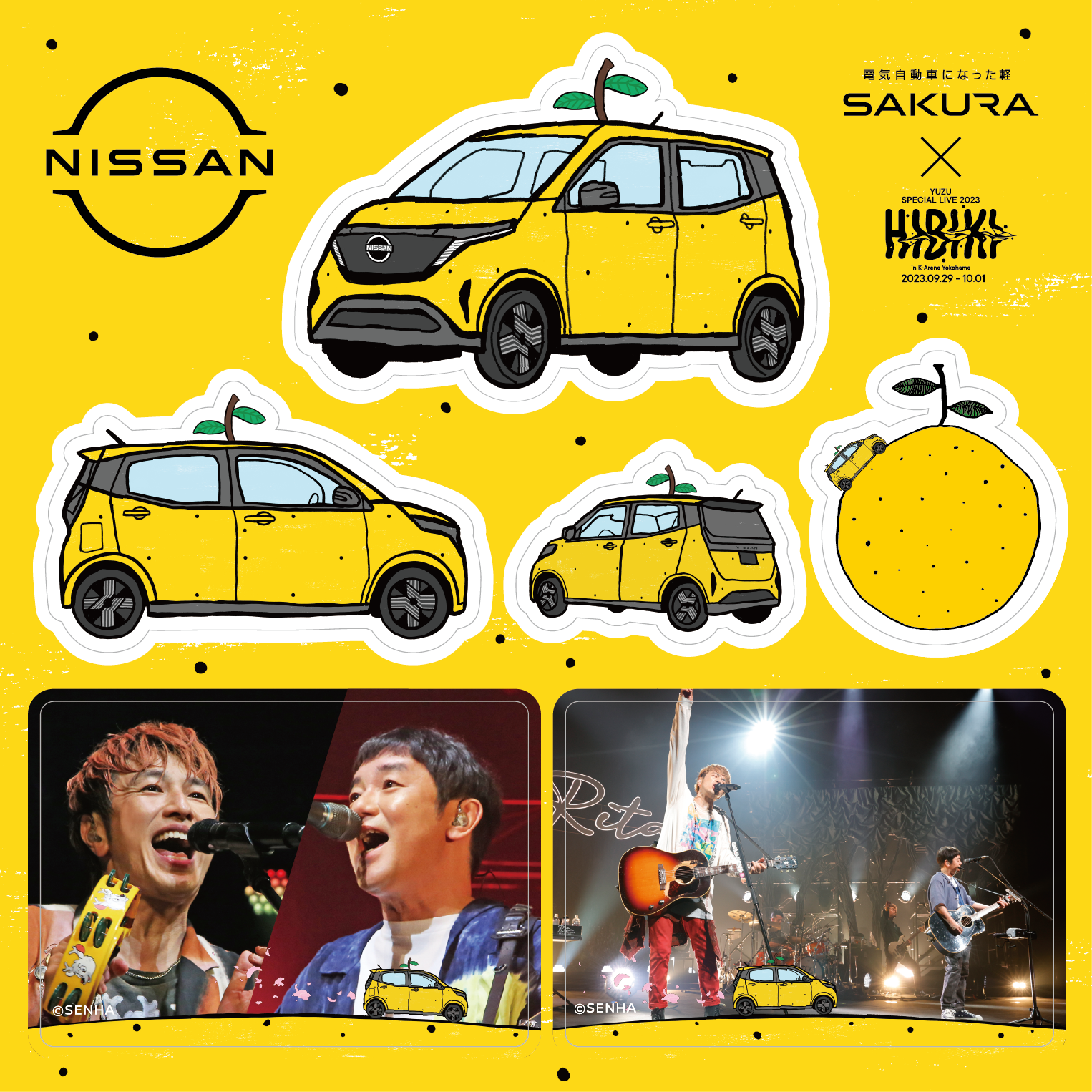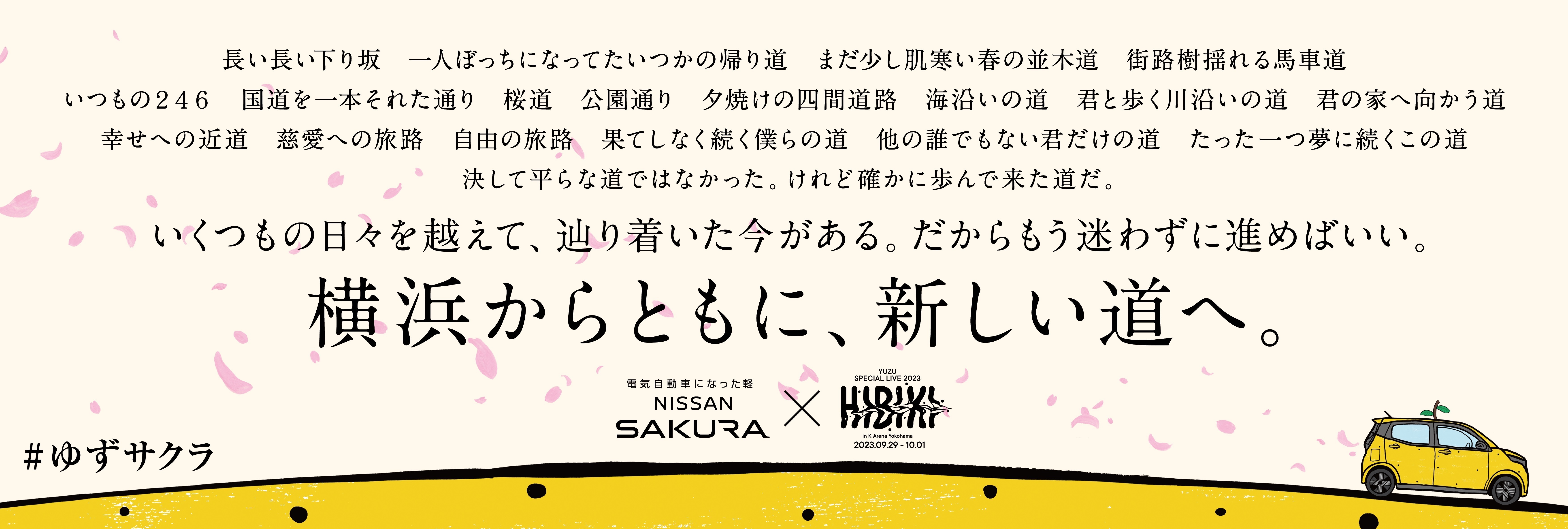 「YUZU SPECIAL LIVE 2023 HIBIKI in K-Arena Yokohama supported by NISSAN」の開催を記念した、ゆずと「日産サクラ」によるコラボレーションの詳細が決定!