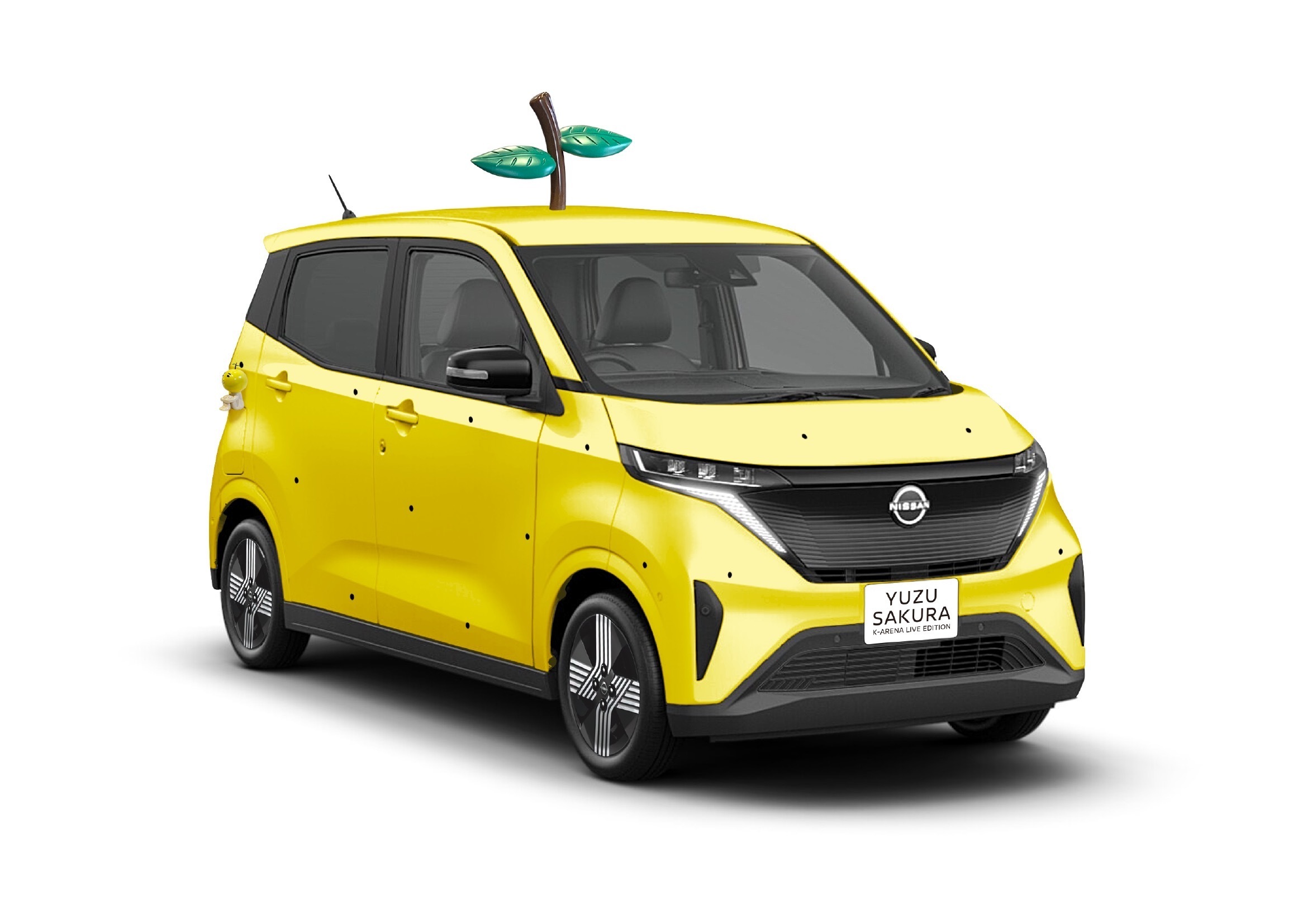 コラボレーションビジュアルに登場した「ゆずサクラ」を実車化。柚子の皮をモチーフとし、車体の上には柚子の茎や葉っぱを生やした、世界に一台だけのオリジナルデザインです。また、ゆずのマスコットキャラクター「ゆず太郎」が車内外のいたるところに座っており、充電口をはじめ、車全体を覗き込んだり探したりしながらお楽しみいただけます。