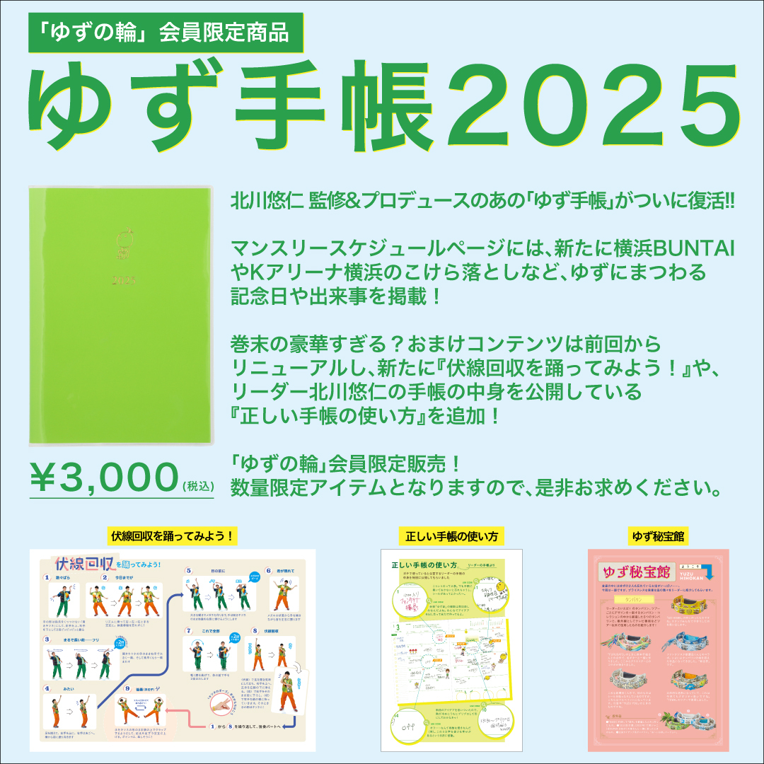 「ゆずの輪」会員限定アイテム!「ゆず手帳2025」「ゆずオフィシャルカレンダー2025」「柚誌入レ」販売決定!