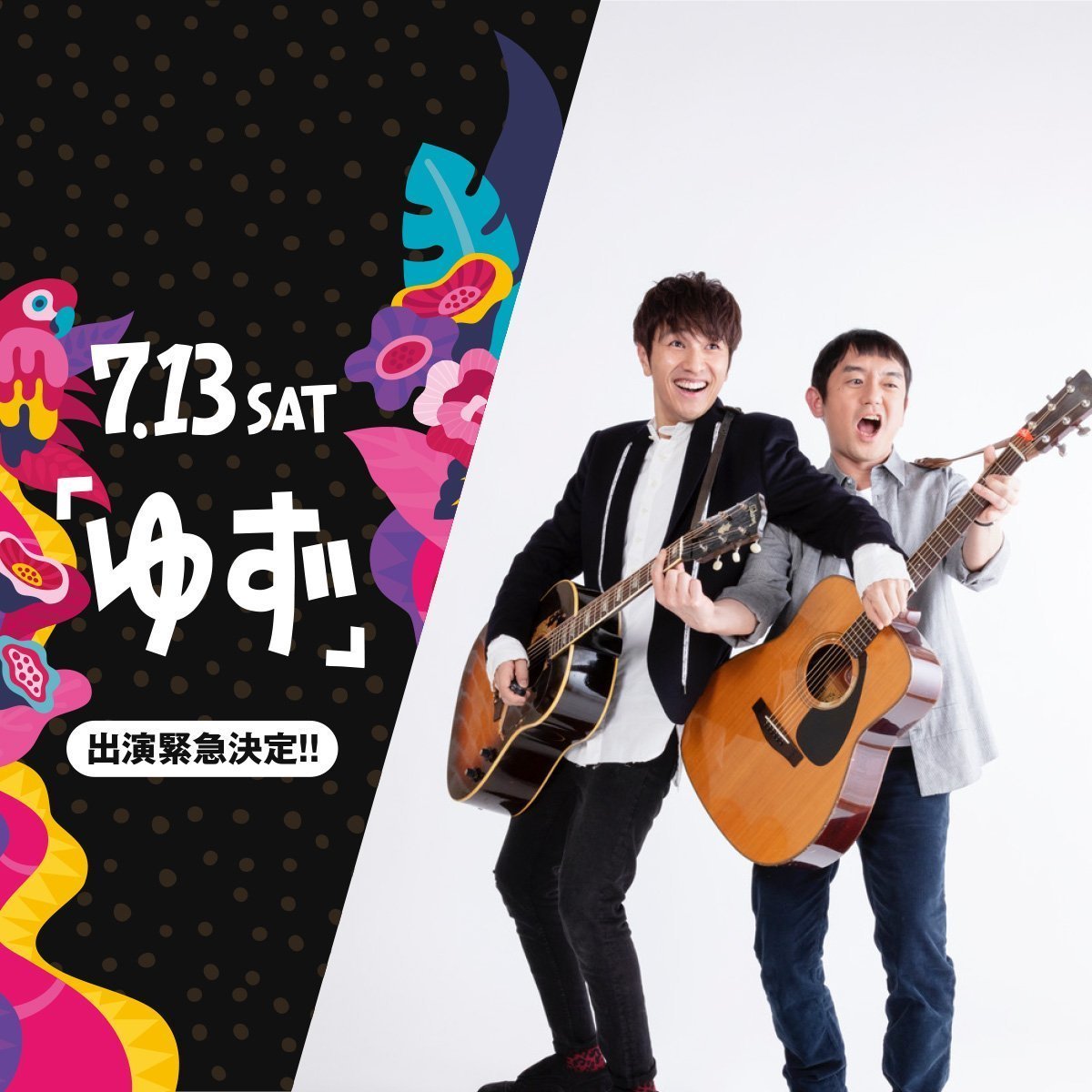 ゆずは7月13日(土)に出演します。お楽しみに!