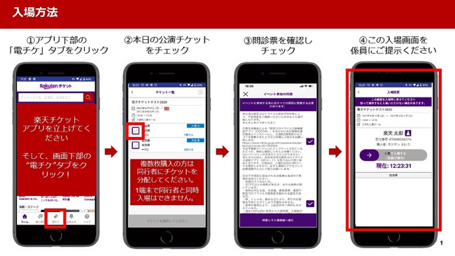 必ず公演の前日までに電子チケット【楽天チケットアプリ】をご準備の上、お時間に余裕をもってご来場いただきますようご協力お願い致します。