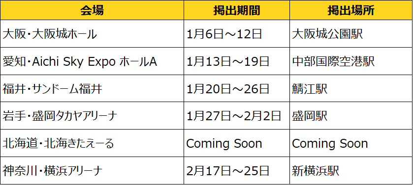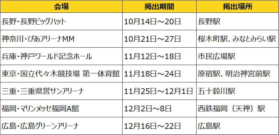 全国13会場の最寄り駅に「13会場限定 つながる駅貼りポスター」を掲出します。掲出期間は、各公演の1週間前から公演当日までです。