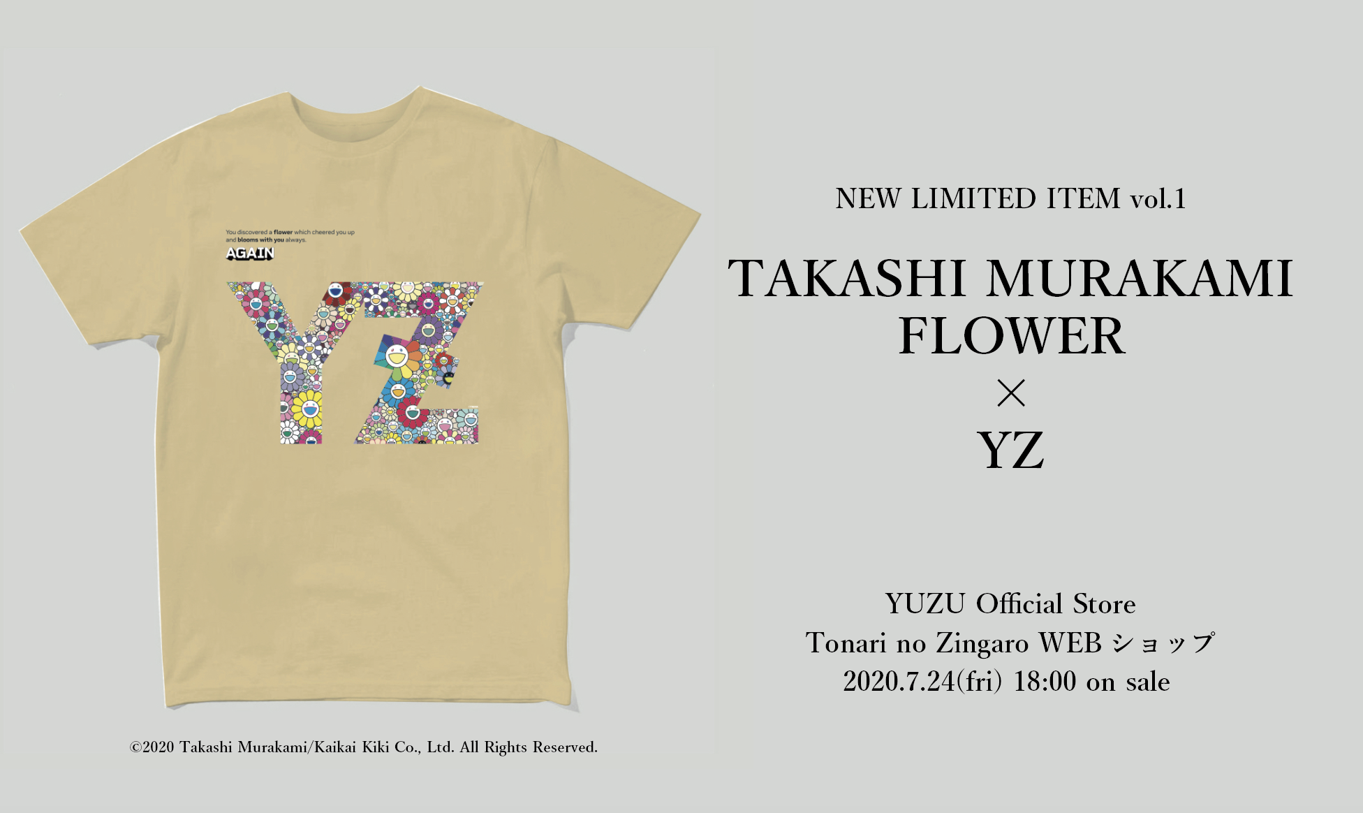 ゆずと村上氏によるコラボレーションアイテムは、ゆずのオフィシャルオンラインストア「YUZU Official Store」と、村上氏率いるアートカンパニー〈カイカイキキ〉が運営する公式グッズショップ「Tonari no Zingaro WEBショップ」にて、各アイテム500枚限定販売。第1弾アイテム「TAKASHI MURAKAMI FLOWER × YZ Tシャツ」は、7月24日(金)より販売開始。