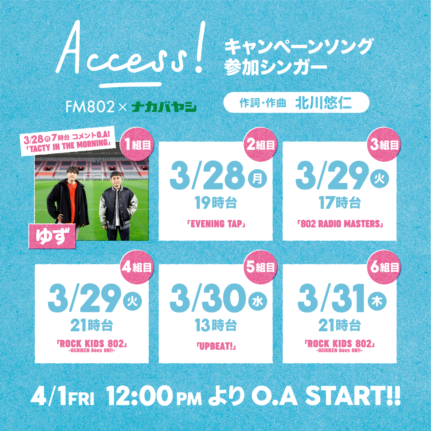 FM802とゆかりあるアーティストが多数参加するオリジナル・キャンペーンソングを制作するドリームプロジェクト「FM802×ナカバヤシ ACCESS! キャンペーン」。