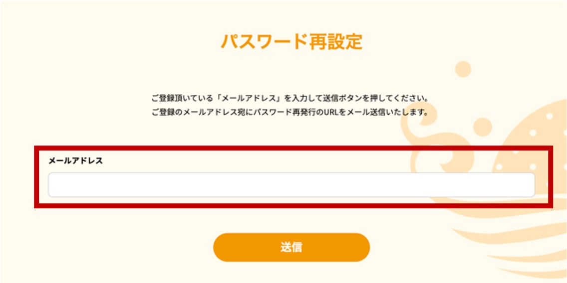 ご登録のメールアドレスを入力下さい。